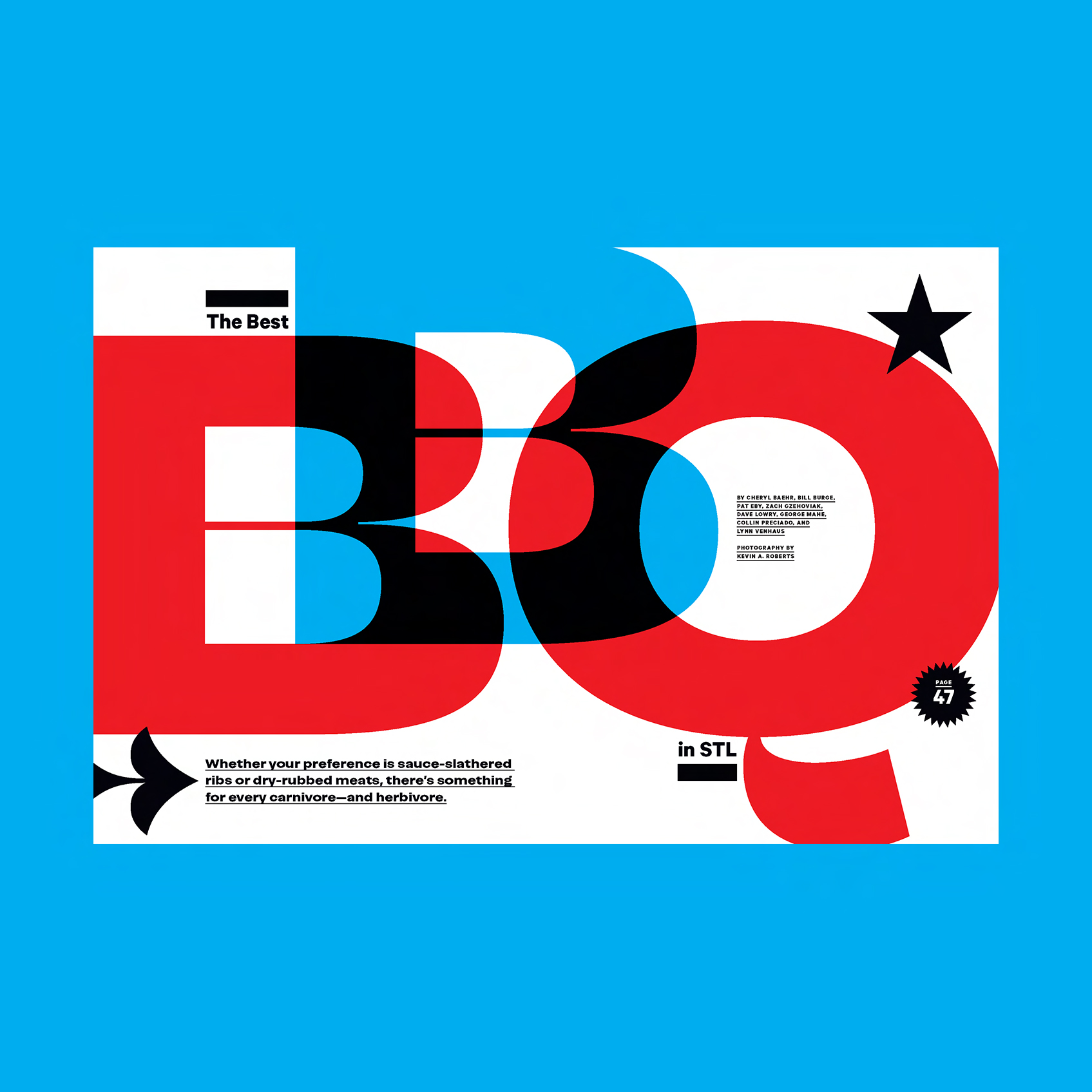 I have been working in the Graphic Design industry since 2003. I currently work as the Design Director at St. Louis magazine as well as an Adjunct Professor at the Missouri School of Journalism. I also have experience working with SAVEUR Magazine, AFAR Magazine, The Book Designers, The Missouri Historical Society, Washingtonian magazine, San Diego magazine, The Hollywood Reporter, Los Angeles magazine, and Honolulu magazine.